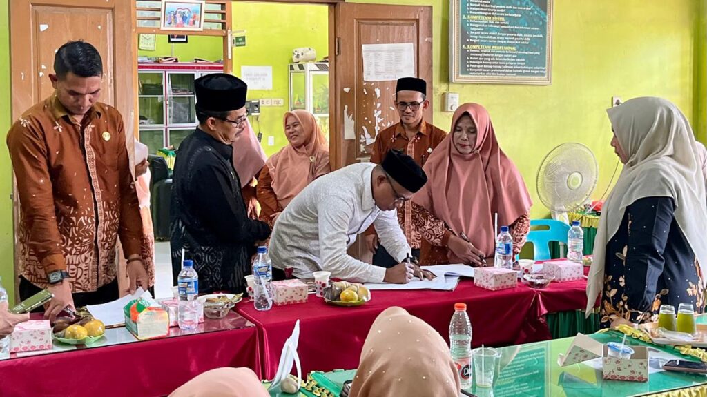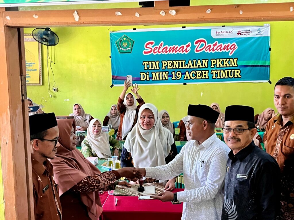 Keluarga besar Madrasah Ibtidaiyah Negeri (MIN) 19 Aceh Timur secara resmi menggelar acara Serah Terima Jabatan (Sertijab) Kepala Madrasah yang dilangsungkan dengan penuh khidmat di lingkungan madrasah. Prosesi ini menandai berakhirnya masa bakti Ibu Nuraini, S.Pd.I, M.Pd. sekaligus menyambut kepemimpinan baru di bawah arahan Bapak Husaini, S.Pd.I. Acara ini dihadiri langsung oleh Kasubag Tata Usaha Kantor Kementerian Agama Kabupaten Aceh Timur, Bapak Saiful Bahri, S.Pd.I. M.Pd. bersama staff keuangan Kankemenag Aceh Timur, Ibu Rahmah, dan jajaran dewan guru, staf TU, serta tamu undangan yang turut menyaksikan momentum transisi kepemimpinan tersebut.
